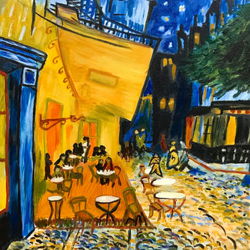 Paintings will be on your choice of canvas of two different sizes. A 5 hour limit. All mediums and materials needed are provided. Snacks and beverages are provided as well!
